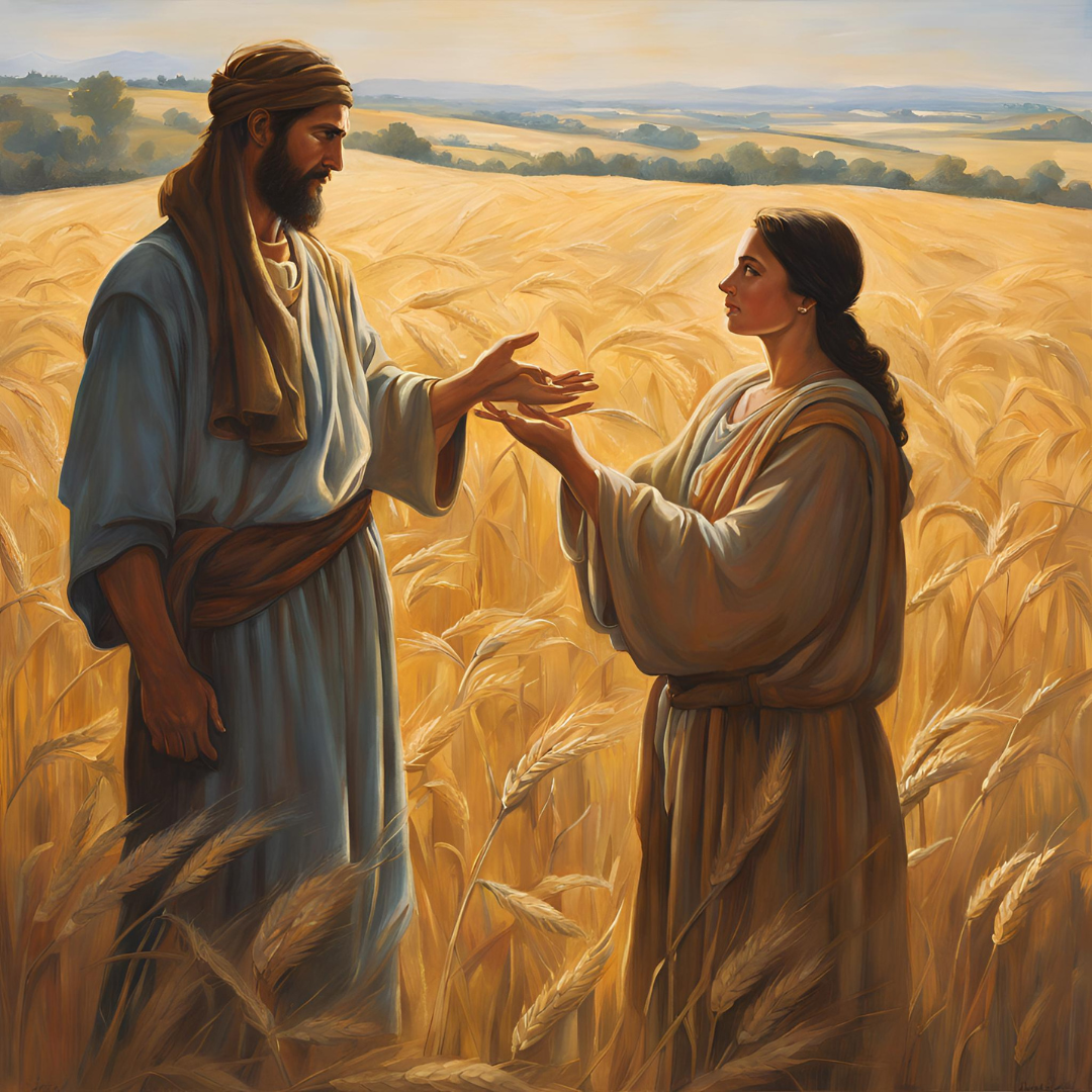 Wanneer Naomi en Ruth terugkomen in Bethlehem, stelt Ruth voor om aren te gaan verzamelen op de velden. Bij toeval komt Ruth op de akker van Boaz terecht en Boaz blijkt heel goed op de hoogte van het wel en wee van Naomi en Ruth. Hij dringt er bij Ruth op aan om op zijn veld te blijven bij zijn arbeiders. Zij mag ook van zijn water en brood nemen. Dit volgt uit het feit dat hij ook blijkt te weten van de verbintenis die Ruth aangegaan is met Naomi. Hij zegt daarover:
